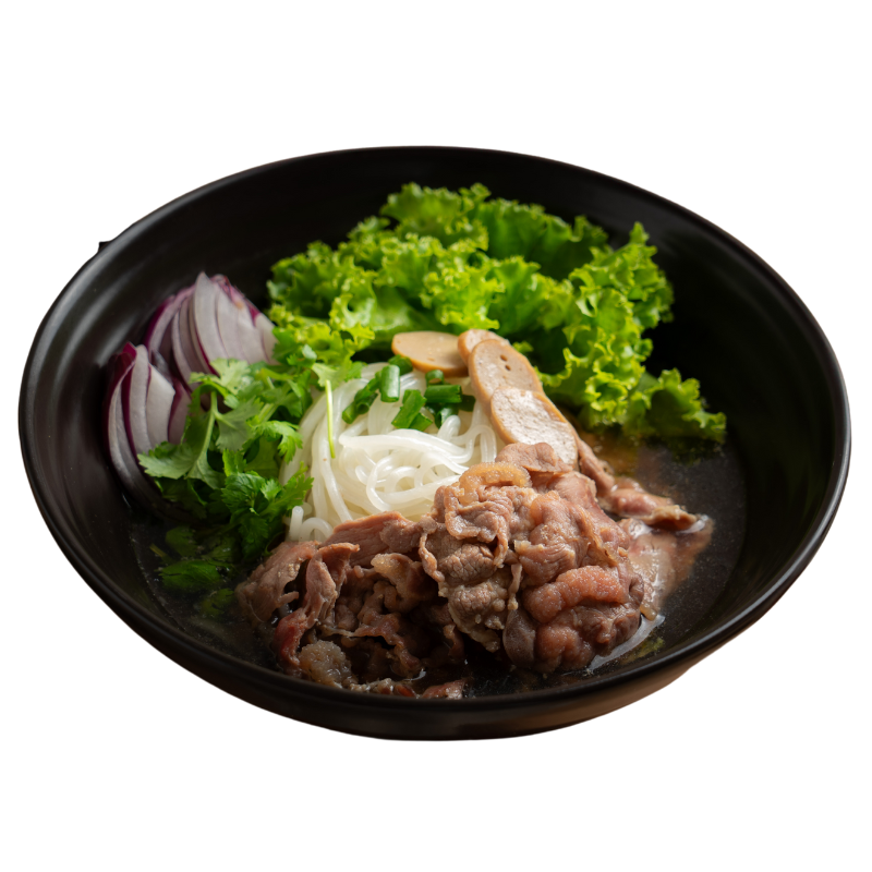 Rice noodles, onion, Cilantro, and scallion served with beef.